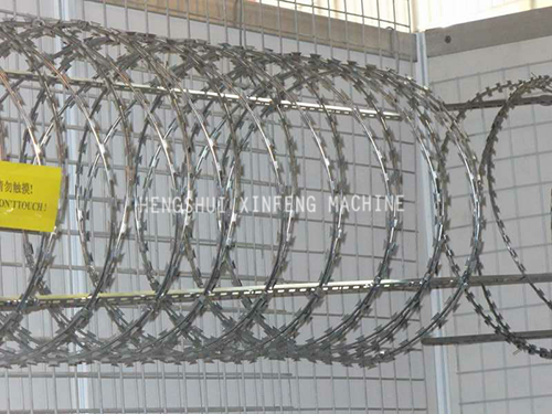 Razor barbed wire is common safe operation material, it has advantages that strong sharp, easy to construct, low cost and so on. Razor barbed wire machine is a special equipment to manufacture razor barbed wire, it has advantages that operate simply, safety, efficient production, adapt to many sorts and so on.